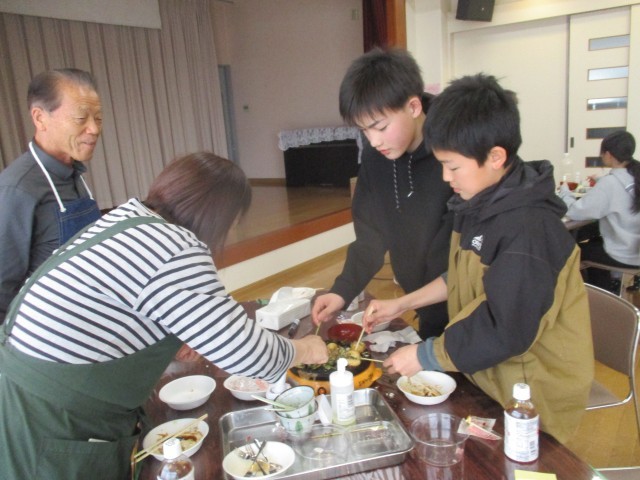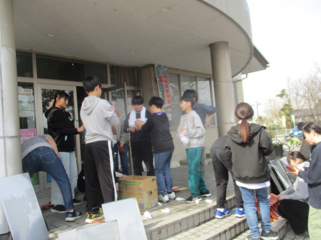 昨日卒業した6年生の子供たちが、自分が住んでいる地区の公民館で清掃奉仕活動を行いました。これまでお世話になったことへの感謝の気持ちを込めて、玄関や部屋の掃除、スリッパ拭き等の仕事していました。清掃の後には、投扇興やピザ作り、たこ焼き作り等の活動を準備していただき、子供たちは笑顔いっぱいでとても楽しそうでした。