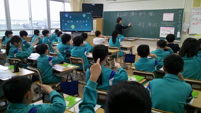 6年生は、国語科の学習で、新出漢字を学んでいました。ドリルを見て、一字ずつ、読み方や部首の他、声に出して空書きして書き順を確認した後、鉛筆で漢字を書きこんでいました。