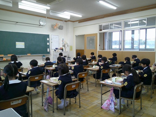 自分たちで頑張って準備した「初めての給食」を、うれしそうに頬張っていました。
