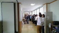6年教室前の廊下では、魚が飼育されています。