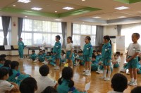 粘土をにぎって、おして、のばして、あなをあけて…手の使い方を工夫しながら粘土遊びをしていました。粘土に穴を開けて顔をつくったり、粘土を細長く伸ばしてへびをつくったりとそれぞれが集中して、活動を楽しんでいました。
