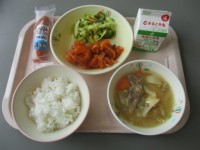 家庭科の学習では、エプロン作りに取り組んでいます。子供たちは、生地をていねいに裁断し、仕付け糸をしてミシンで縫いやすくしました。ミシンを使う際は、操作の仕方を友達と確認し、安全に気を付けて製作しています。