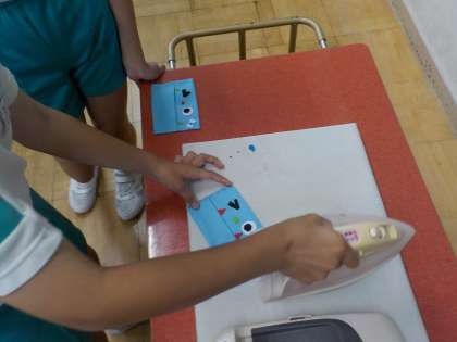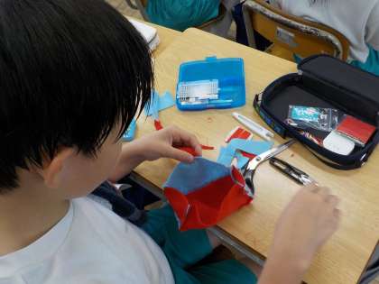 手縫いの学習を生かし、ワッペンやブックマーカー等から作りたい物を選び、小物作りをしています。先生や友達のアドバイス、作り方の手引きを参考にして取り組みました。完成に近づくにつれて、喜びの表情が増えてきました。