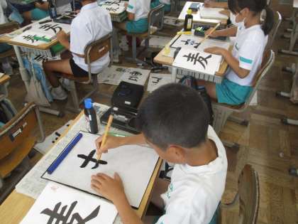 7月18日 4年生 集中して書く「麦」 公開日 2024/07/18 更新日 2024/07/18 4年生 毛筆の学習で「麦」を書きました。 手本をよく見て集中して1枚書き、自分で見直して更に次の1枚を書きます。 緊張感が伝わりました。