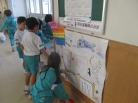学校探検がおわり、「せんせいとなかよしだいさくせん!」の学習をしています。先生の名前と好きな物を聞き、サインをもらいます。子供たちは、ていねいな言葉遣いでインタビューを頑張っていました。先生方のサインが少しずつたまっていくので嬉しそうでした。