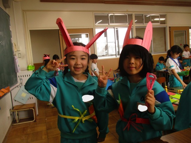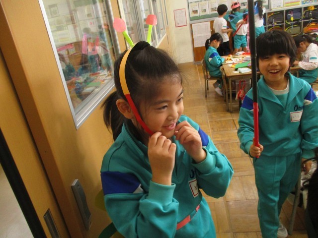 1年生全員で秋のおもちゃで遊びました。子供たちは、この日のために工夫して準備をしてきました。学級を越えてたくさんの友達に遊んでもらい、嬉しそうな様子がたくさん見られました。