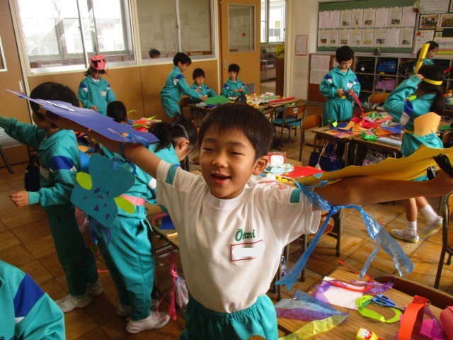 12月5日 1年生 図画工作科「ふわっふわっゴー」