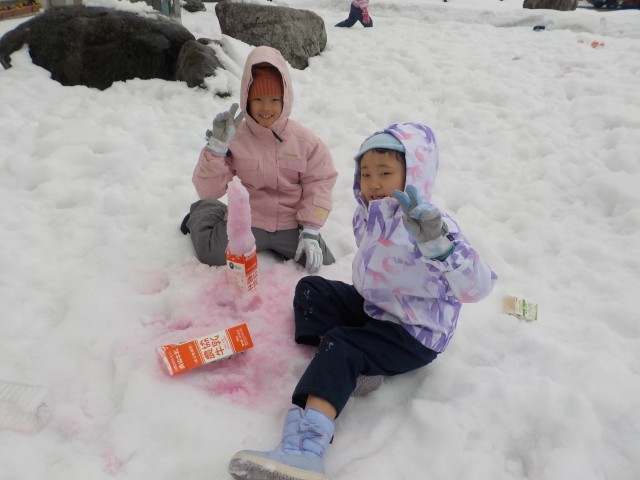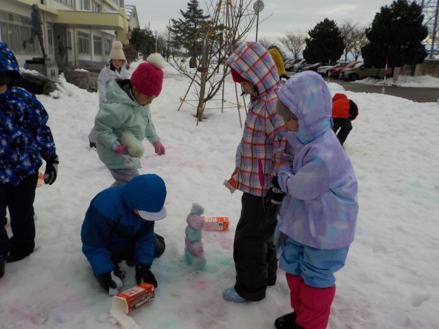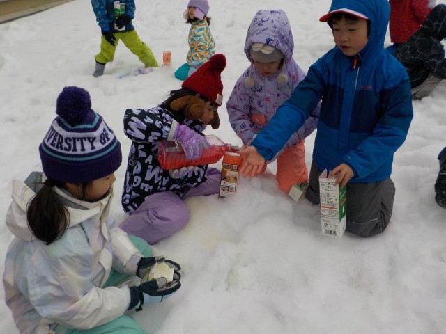 雪だるまやかまくら作り、そり遊びをして楽しみました。子供たちは、冬を感じながら思いきり体を動かしました。