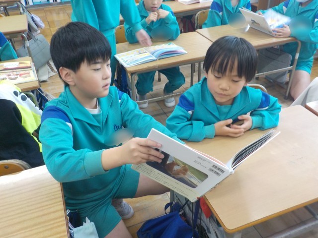 4年生に読み聞かせをしてもらいました。子供たちは楽しみながら読書に親しんでいました。