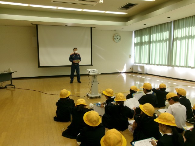 仕事内容に関するお話を聞いたり、火災や救助等で使用する車を実際に見たりしました。これまで学習してきたことに今日の体験が加わり、更に学びを深めることができました。