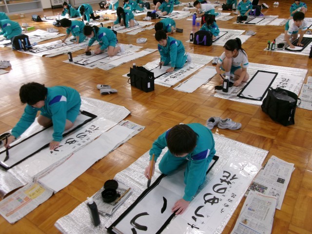 3年生の書き初め練習の様子です。初めは準備や片づけに時間がかかったり、いつもより大きな紙に大きな筆で書くことに苦戦したりしましたが、練習を重ねていくうちに少しずつ上達してきました。