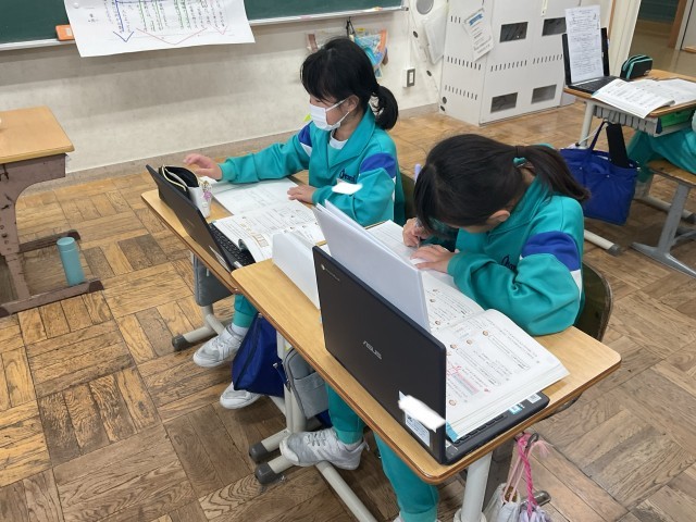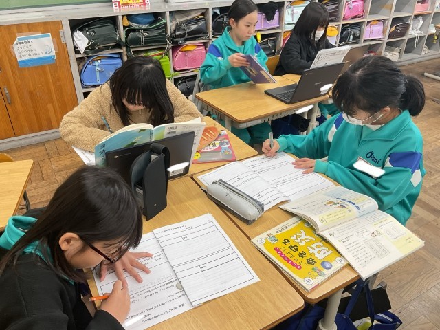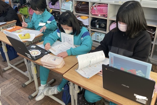 4年生は、単元内で自分のペースで学習を進める自由進度学習に取り組んでいます。今回は国語「もしものときにそなえよう」と算数「変わり方」の二単元を同時に行っています。手引きを見ながら、今日はどちらに取り組むか、そしてどこまで進めるかを自分で決めて、一生懸命に学習を進めています。子供たちは学習内容の理解だけでなく、自分で決めたことをやりとげる経験を積み重ねています。