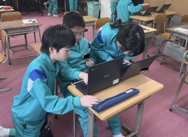 4年生は、単元内で自分のペースで学習を進める自由進度学習に取り組んでいます。今回は国語「もしものときにそなえよう」と算数「変わり方」の二単元を同時に行っています。手引きを見ながら、今日はどちらに取り組むか、そしてどこまで進めるかを自分で決めて、一生懸命に学習を進めています。子供たちは学習内容の理解だけでなく、自分で決めたことをやりとげる経験を積み重ねています。