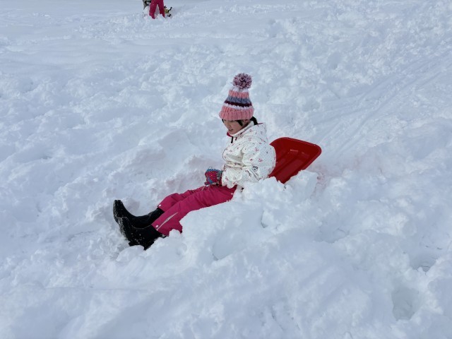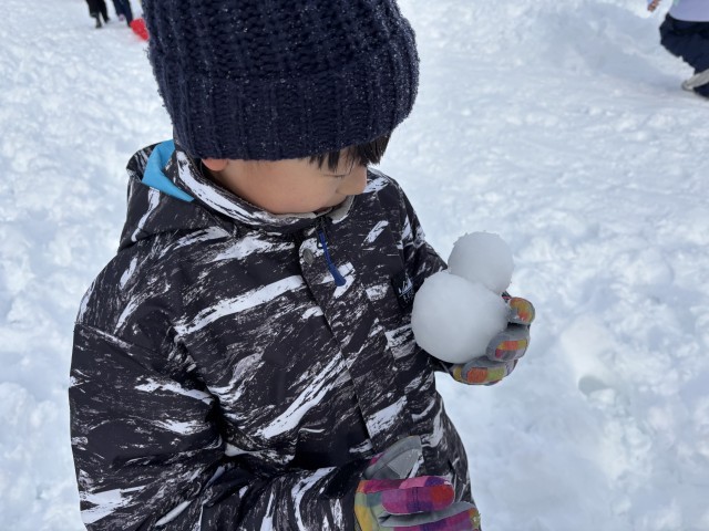 雪遊びをしました。山からそりで滑ったり、大きな雪だるまを作ったりと、思い思いの遊びを楽しむ姿が見られました。