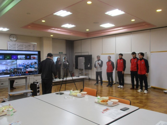 今週の給食は、富山県で活躍するスポーツチームの応援メニューでした。最終日の今日は、小矢部市が誇る男子社会人ホッケーチーム「小矢部RED OX」の応援メニューで、REDに因んで「赤」が入っている献立や、OXの由来である「源平火牛の計」に関連した献立でした。大谷小学校には、小矢部RED OXの監督・選手の皆さん5名をお招きし、6年生が給食時間に交流しました。たくさんの質問に丁寧に答えていただき、子供たちはとても楽しそうでした。