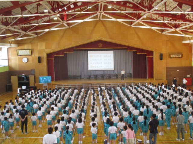 2学期が始まりました。9月にもかかわらず、とても気温が高く暑い日でしたが、子供たちは、朝から明るい声で挨拶をしていました。