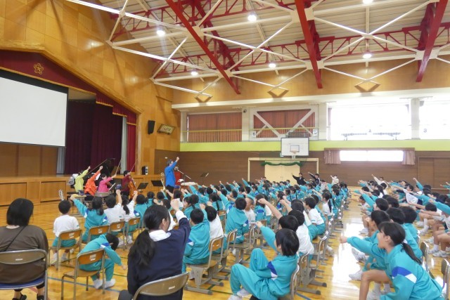 デリバリー・オーケストラさん(通称「デリオケ」さん)によるコンサートが本校体育館で行われました。