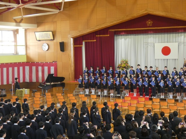51名の卒業生のみなさん、ご卒業おめでとうございます。卒業生のこれからの活躍を、教職員一同、心より楽しみにしています。大きな声で返事をし、校長先生から卒業証書を受け取る姿は堂々として立派でした。また、式歌「栄光の架け橋」では、歌声が一つになって美しく響き、子供たちからの様々なメッセージが込められているように感じました。 -