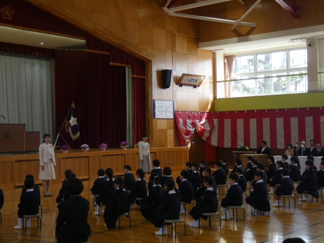子供たちはみんな、名前を呼ばれると元気いっぱいの声で返事をしていました。また、6年生のお兄さんお姉さんの歓迎の言葉を真剣に聞いていました。