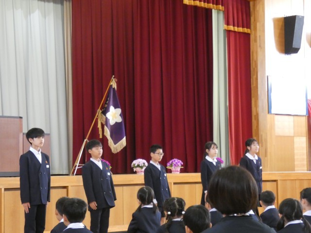 また、校長の退任式では、5年生の代表児童が心を込めてメッセージを伝えました。