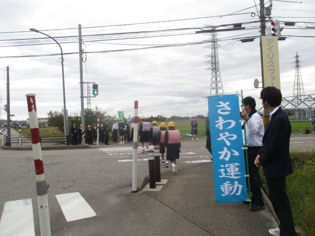 今朝、水牧交差点で大谷小学校の運営委員会や中学生、高校生、PTAの方と協力して「さわやか運動」を行いました。運営委員会の子供たちが「おはようございます。」と挨拶をすると、挨拶を返してくれる子供たちや地域の方々がいて、心が温まり気持ちのよい朝になりました。