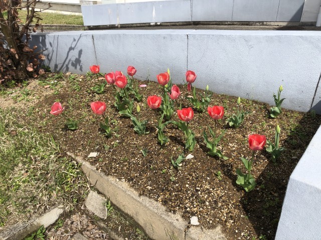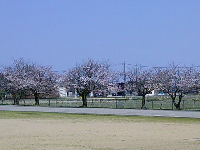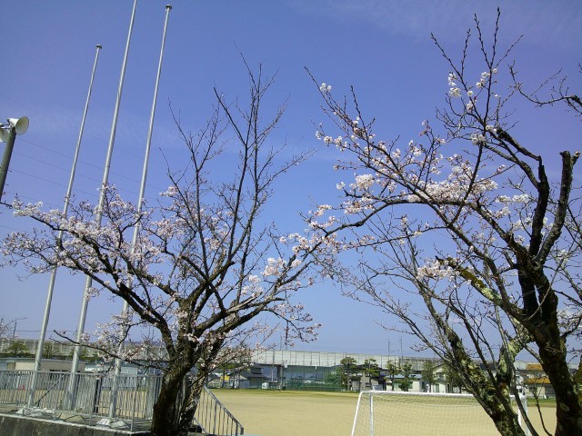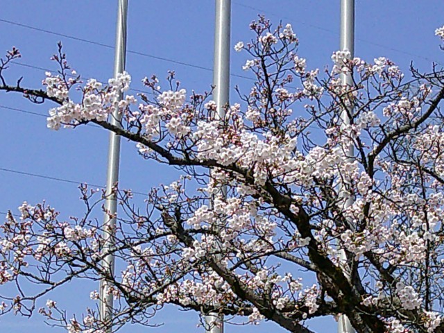 敷地内の桜も咲き始め、明るい光に輝いています。