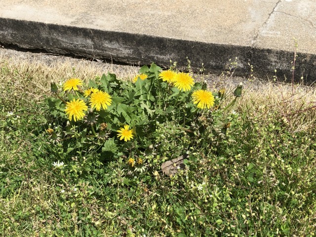 玄関前には、春が感じられる花も咲いています。また、芝生のきれいに手入れされています。