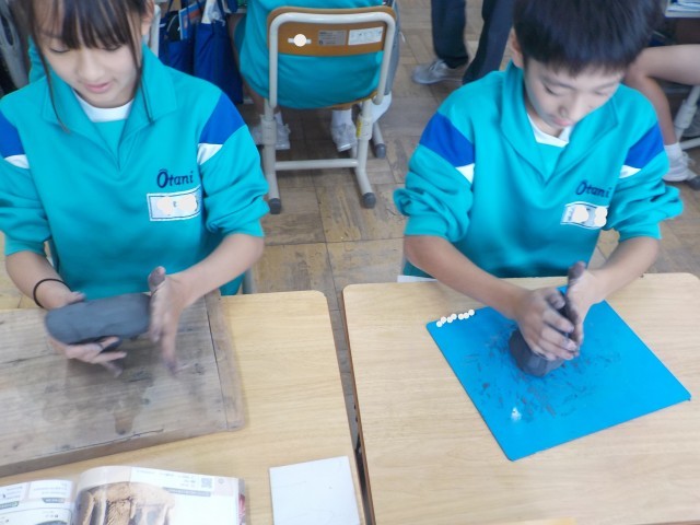 図画工作科では、土粘土を使って学習をしました。自分が小さくなったら、どのような建物の中に入りたいかという想像を膨らませて作品を仕上げました。作品をよく見ると、工夫した形や細かな飾り等があり、こだわりが...