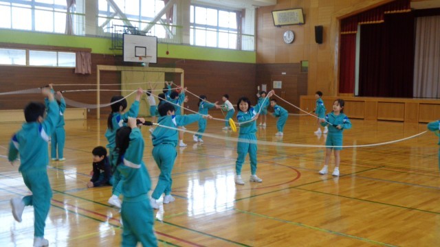 なわとびあそびの学習をしました。短なわでは、前跳びや後ろ跳びに挑戦しました。子供たちは、ペアで数を数え合ったり、応援し合ったりしていました。長なわでは、8の字跳びに挑戦しました。なわに入るタイミングや...