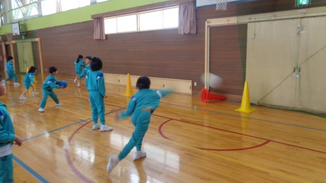 体育科の学習では、「ボールなげゲーム」を行っています。今日は、ボールを的に当てたり、キャッチしたりする練習をしました。子供たちは、投げることを楽しみ、同じチームになった友達と声をかけ合いながら練習して...
