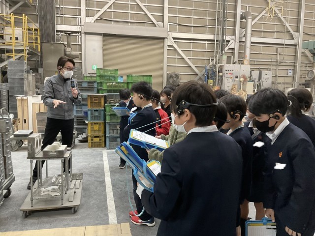 社会科で学習した高岡市のまちづくりと関連して、株式会社能作に校外学習へ行きました。工場で鋳物が作られる様子を見学し、箸置き作りを体験しました。子供たちは、見て聞いて体験して、鋳物を楽しみました。