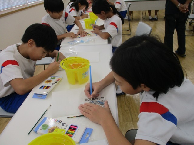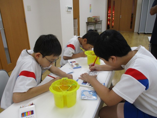 あんどん会館では、館長様やスタッフの皆様から教えてもらいながら、武者絵や竜などのイラストに絵付けをするコースターを完成させました。行燈への熱い思いを受け継ぐ人々の様子、実際の大きな行燈を見て祭りに参加したいと思う子供が増えるとよいと思います。