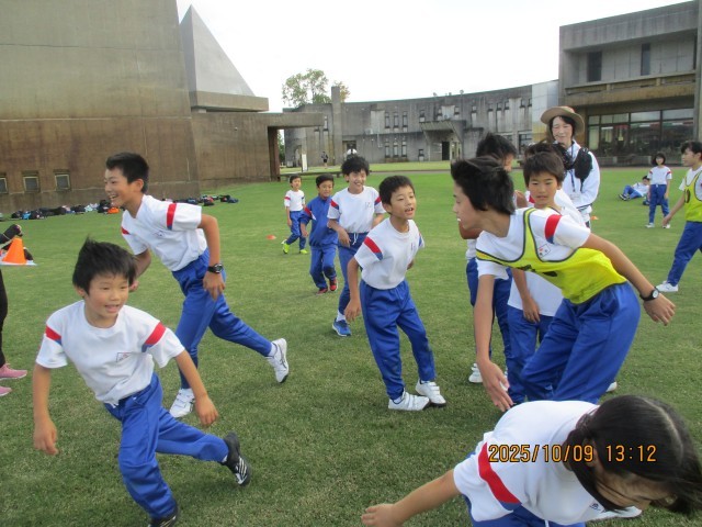 グループ遊びでは6年生が準備したゲームをみんなで楽しみました。風が強く、準備したゲームが変更になりましたが、臨機応変に進行し下級生に説明しました。