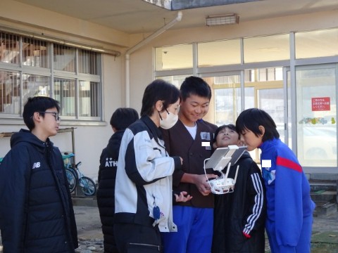 現在、桜町で行われている工事についての説明を聞いた後、VRゴーグルで工事現場を見学したり、模型作りをしたりしました。また、現場で使われているドローンも操作させていただきました。手元の画面から地上の様子が見えると、歓声が上がりました。
