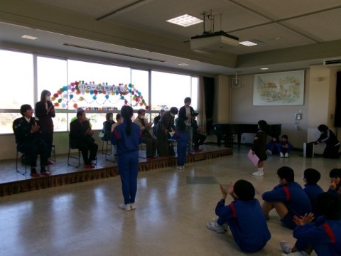 感謝の手紙を渡したり、6年生からのお礼の言葉を伝えたりしました。4年生は、こきりこ踊りをささらを使って踊りました。