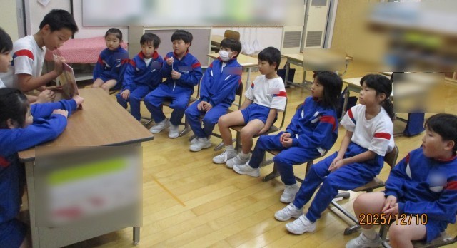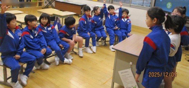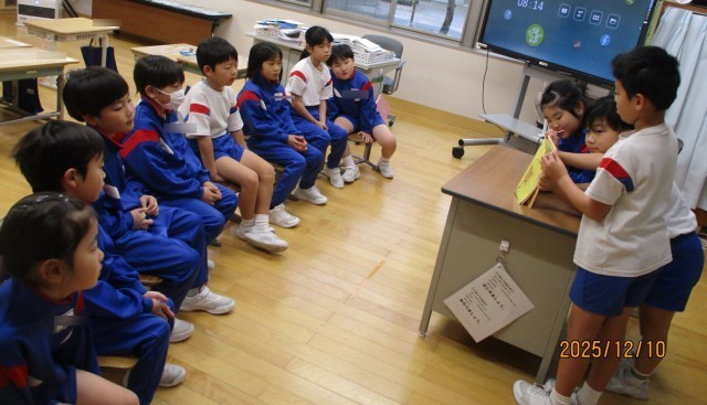 1年生は、3年生に「クイズみたい本でおもしろかったです」「読んでくれて、ありがとう」と、感想や感謝の言葉を伝えました。