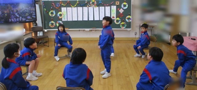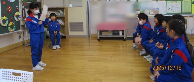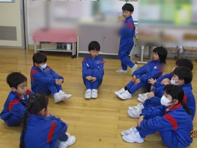 「あわてんぼうのサンタクロース」を元気よく歌ったり、「ハンカチ落とし」や「なんでもバスケット」などのゲームを楽しくしました。
