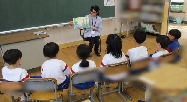にっこりキラキラ1年生(図書館司書による読み聞かせ) 公開日 2026/04/28 更新日 2026/04/28 日々の学校生活 朝読書の時間に、図書館司書の先生が1年生に読み聞かせをしてくれています。子供たちは、お話の世界に引き込まれて楽しそうに聞いていました。