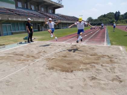 陸上種目の学習のまとめとして、小矢部陸上競技場に行き、100m走と走り幅跳びの記録を測定しました。今までの自分の記録よりもよい記録を出すために、何を意識して取り組もうかと、真剣に考えてそれぞれの競技に取り組みました。