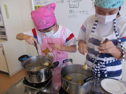 また、9日は、ジャガイモの芽を取ること、ゆで上がりは竹串をさして確かめること等を学びました。