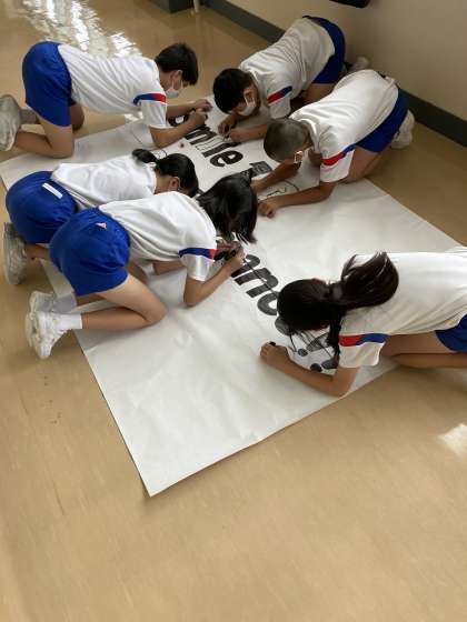 9月10日に、学年のステージ発表の背景を子供たちでつくりました。子供たちが協力して、絵をかいたり、字に色を付けたりして工夫しました。