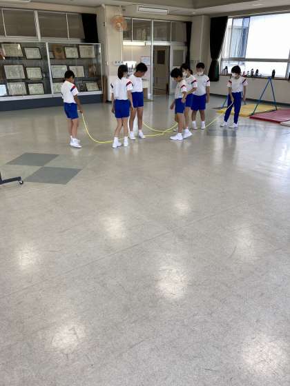 学習発表会に向けて、グループに分かれて練習しています。ダブルダッチチームは、全員がリズムよく縄に入れるようになりました。