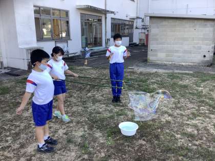 クラブ活動 9月21日 公開日 2021/09/21 更新日 2021/09/21 お知らせ 9月21日に4〜6年生でクラブ活動を行いました。 実験・工作クラブでは巨大シャボン玉作りに挑戦しました。洗剤と洗濯のりを混ぜてシャボン液から作りました。 もっと大きなシャボン玉を作るために、異学年で声をかけ合いながら活動を進めることができました。