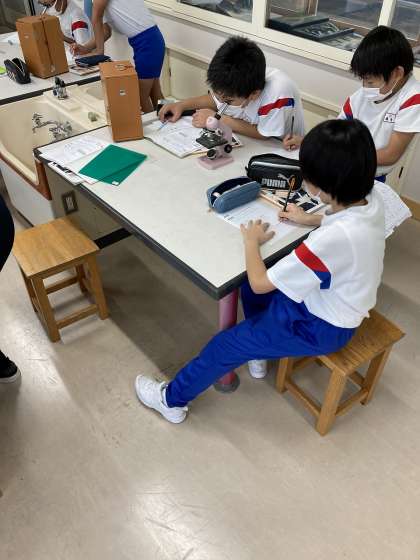 5年生「花粉の観察」 9月22日 公開日 2021/09/28 更新日 2021/09/28 お知らせ 理科の学習でヘチマの花粉を観察しました。観察をすると「お米の粒みたい」「倍率を上げると暗くなるんだね」などと話していました。