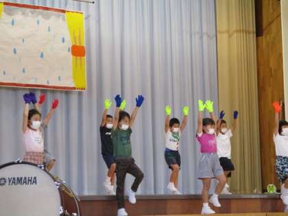 学習発表会 10月3日 公開日 2021/10/03 更新日 2021/10/03 お知らせ 学習発表会を行いました。今年の児童会のテーマは「とどけよう!笑顔いっぱいのステージを〜87人で力を合わせて〜」でした。 今までの練習の成果を発揮し、達成感にあふれた子供の姿が見られました。保護者の皆さんからたくさんの拍手をいただき、子供たちも笑顔いっぱいになりました。