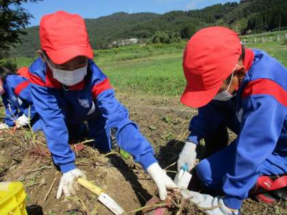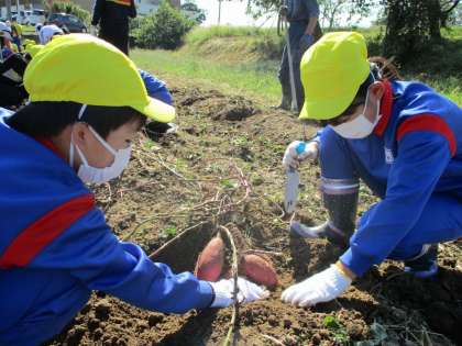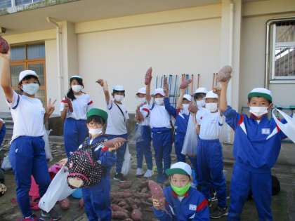 さつまいも掘り 10月7日 公開日 2021/10/07 更新日 2021/10/07 お知らせ 青空が広がり、とても良い天気の中で、さつまいも掘りをしました。色団に分かれて、上級生を中心に協力してさつまいもを掘ることができました。 たくさんのさつまいもを収穫することができて、みんな嬉しそうでした。各家庭に持ち帰って食べるのが楽しみですね。