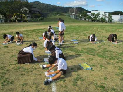 理科では、太陽とかげについて学習しています。今日は1日かけて、太陽の位置とかげの動きを観察しました。1時間ごとに支柱のかげと太陽の位置を記録していくと、太陽の位置が変わっていることや、かげの位置と長さが変わることに気づきました。