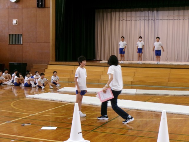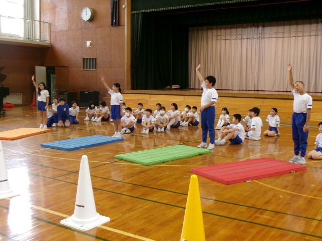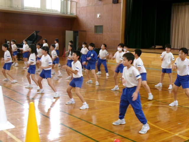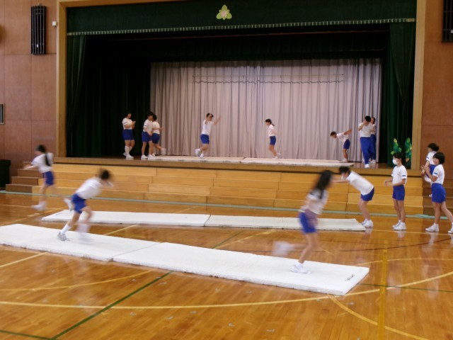 5年生は、マット運動の流れとせりふ、ダンスを練習しています。