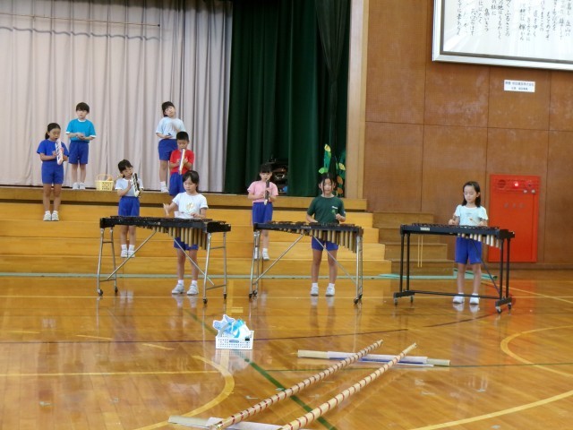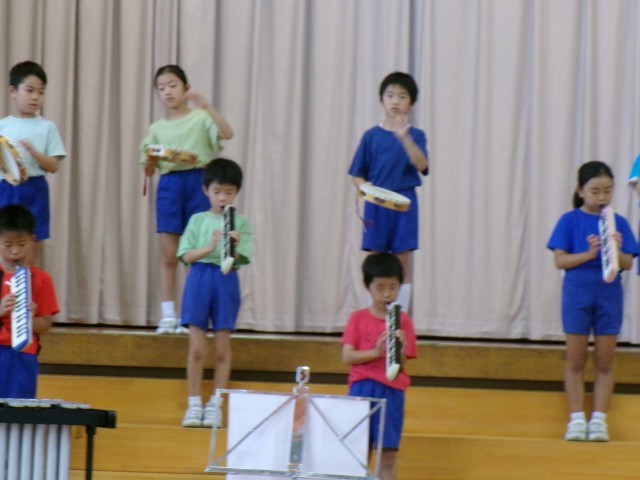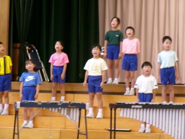 2年生は、「青い空に絵をかこう」を発表します。今日から衣装を身に着けて練習に取り組みます。大きく口を開けて、のびのびとと歌うことができるようになってきました。