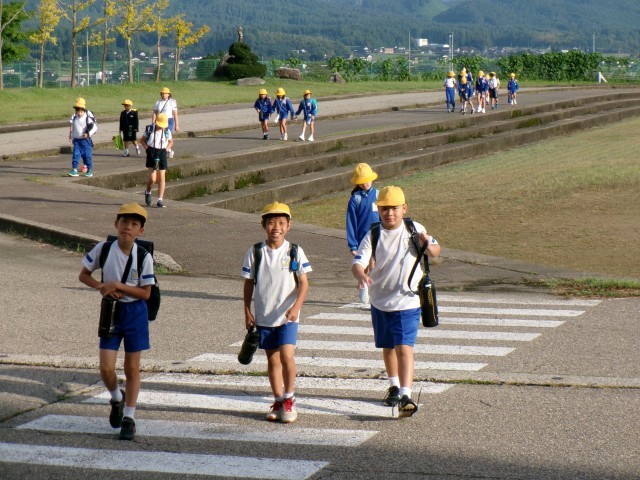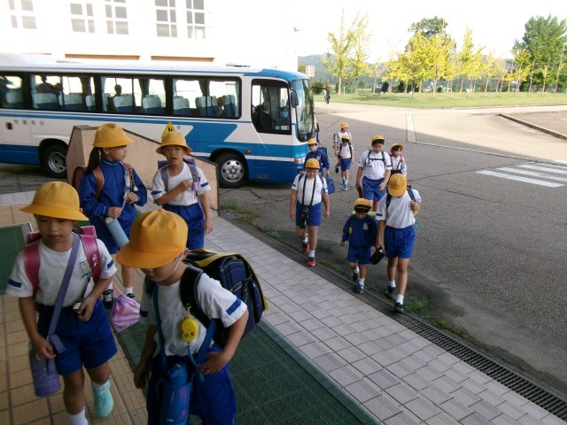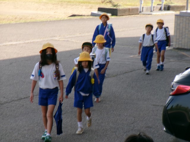 今日は秋晴れの涼しい朝となりました。子供たちが元気に登校して来ました。
